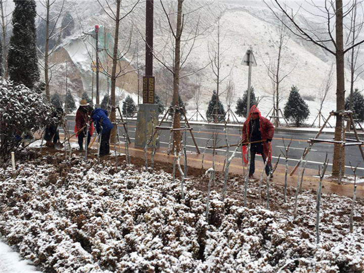 他們如寒梅傲立,似青松巍然,腳踏實地,不辭辛勞,是企業精神最直接的體現。正是有了他們的敬業和堅守,才有了國家文史公園、司馬遷祠、澽水河、沿黃公路、黨家村、三廟等一系列為古老韓城增光添彩的工程項目。讓我們在欣賞雪景的同時,更對他們的付出表示衷心的感謝!