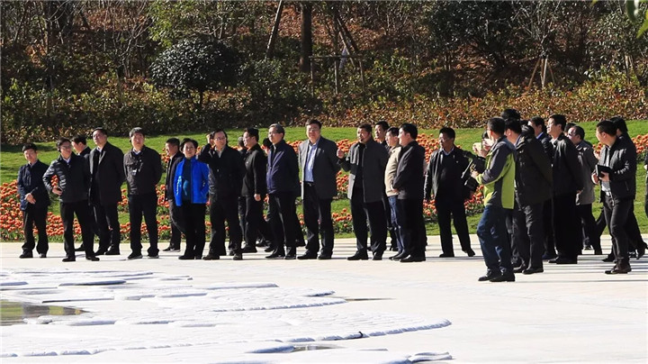 1月11日,在“三看”活動中,贛州市人大常委主任、黨組書記王林云一行,考察了浙江人文園林股份有限公司營造的安遠縣“書香公園”。