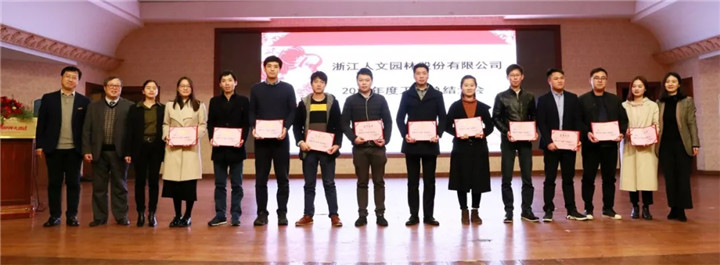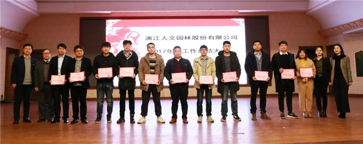 會議期間,公司高管、部分子公司負責人分別通報了公司職能部門和相關分(子)公司2017年的工作情況,并舉行了人文園林2017年度優秀職能部門、優秀項目部、優秀管理人員、優秀員工及真善獎、精美獎、眾和獎的頒獎儀式。