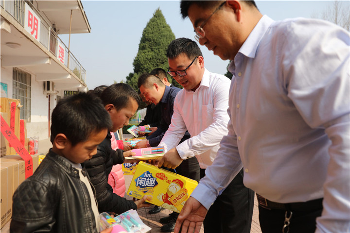 正午時(shí)分,人文園林公司代表與韓城市教育局黨委委員、紀(jì)檢書記高占武及西莊教育組組長劉云亭等領(lǐng)導(dǎo)一起,驅(qū)車三十余公里,來到四面環(huán)山地處偏僻的西莊鎮(zhèn)盤龍小學(xué),為孩子們送來了滿載一車的愛心物品。