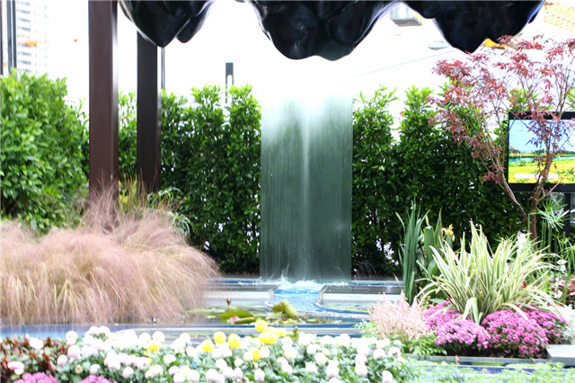 因為獨出心裁的設計和布置,人文園林展位受到了廣大市民的青睞,特別是流動水幕和鏡面水景,讓這里成為了市民們拍照的熱門地點,大家紛紛排隊合影,留下一個個精彩瞬間。