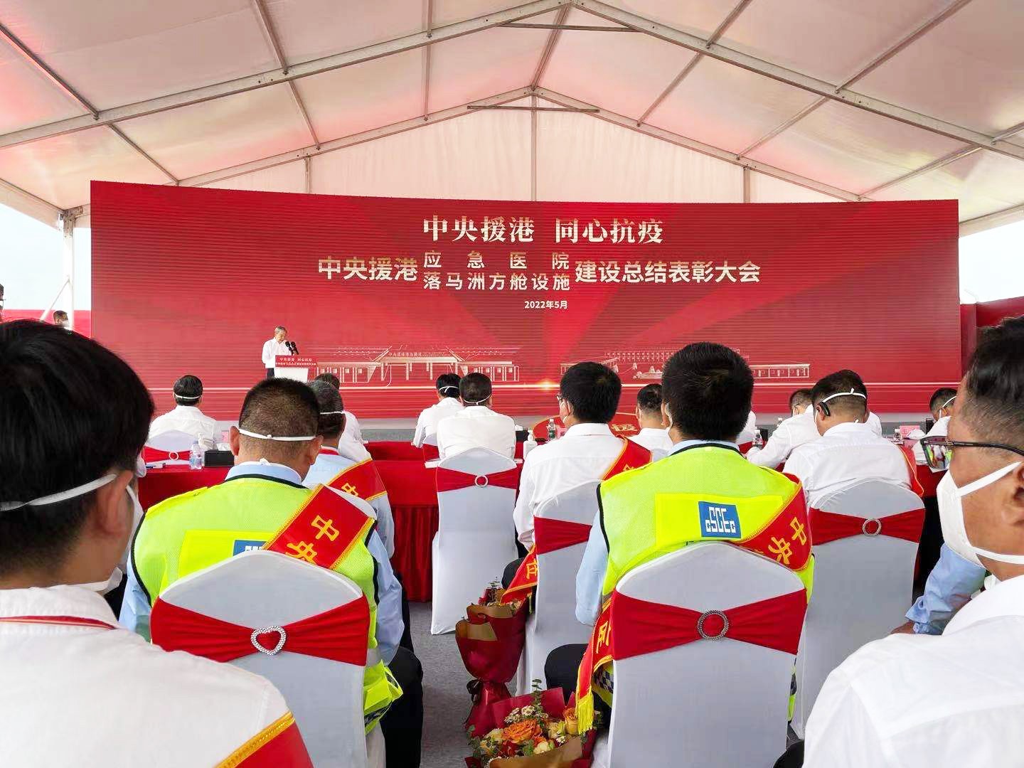 5月6日,中央援港應急醫院和落馬洲方艙設施項目舉行全面竣工交付儀式。內地支援香港抗疫工作專班、特區政府、深圳市人民政府和中建集團有關負責人出席。